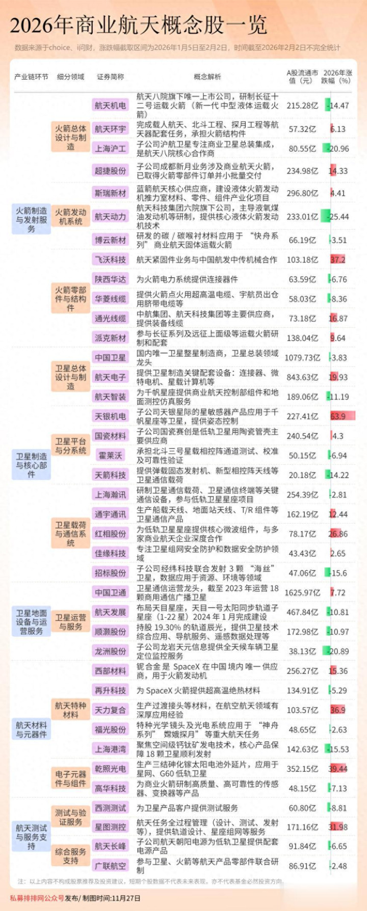 二、2026年39家商业航天股一览(附排名)